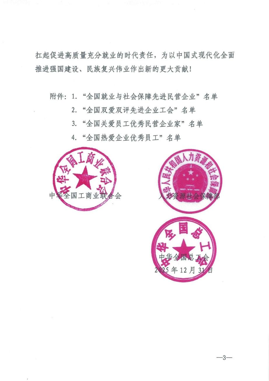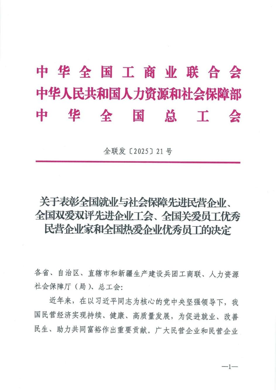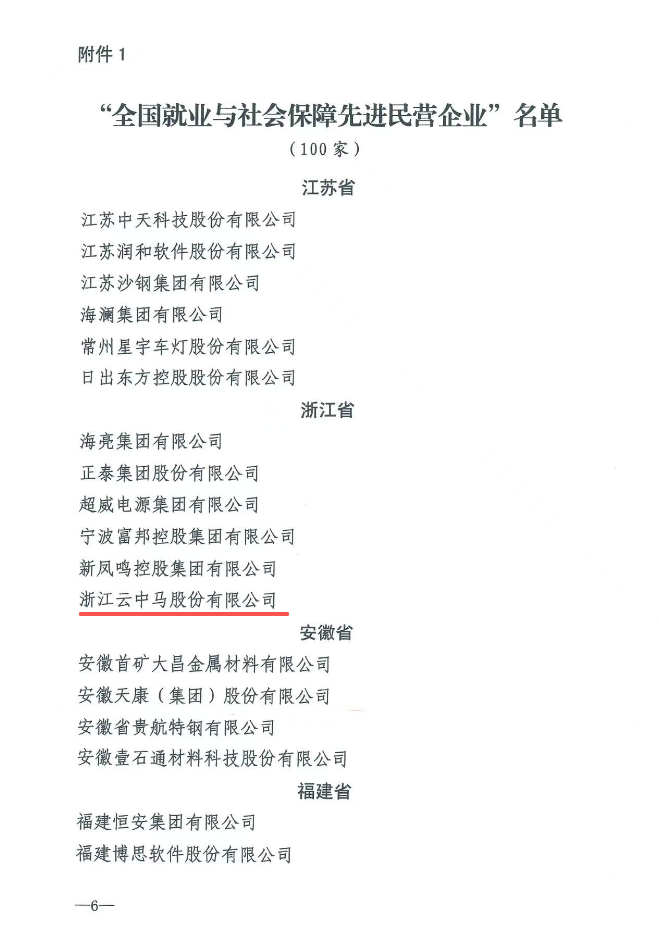 近日,由中華全國工商業(yè)聯(lián)合會、人力資源和社會保障部、中華全國總工會聯(lián)合印發(fā)的《關(guān)于表彰全國就業(yè)與社會保障先進(jìn)民營企業(yè)等先進(jìn)典型的決定》(全聯(lián)發(fā)〔2025〕21 號)正式公布,浙江云中馬股份有限公司憑借在穩(wěn)定就業(yè)、完善社保體系、構(gòu)建和諧勞動關(guān)系等方面的突出貢獻(xiàn),榮獲 “全國就業(yè)與社會保障先進(jìn)民營企業(yè)”稱號!這一國家級榮譽(yù),不僅是對云中馬踐行 “以員工為本” 理念的肯定,更是對其作為制造業(yè)民企 “穩(wěn)就業(yè)、保民生” 社會責(zé)任的生動注解。